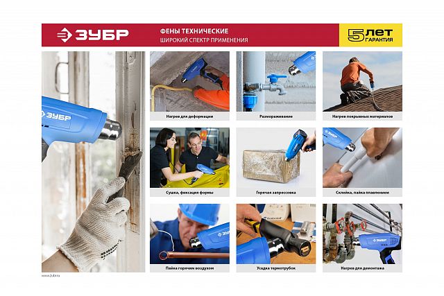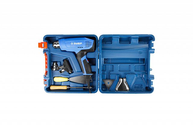 Технический фен ЗУБР Профессионал, 2000 Вт, 600°C, с дисплеем, синий (кейс)