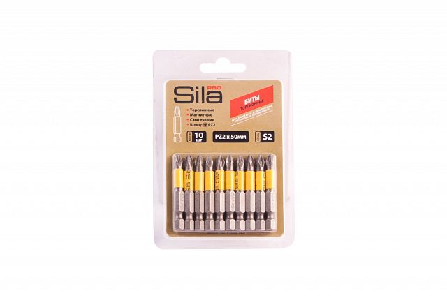 Набор бит Sila Pro, PZ2*50 мм, сталь S2, торсионные, намагниченные, 10 шт