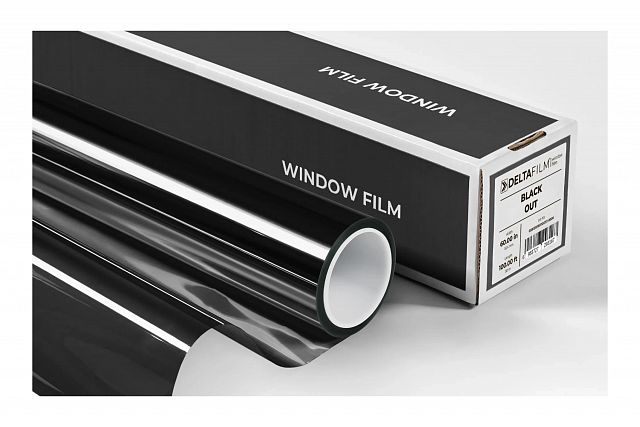 Декоративная пленка Uniondelta Deltafilm BLACK OUT 2 MIL, 1,52*30 м, 60 мкм, VLT 0%, PET, глянец, черный Чёрная архитектурная плёнка для внутреннего декора и блокирования двусторонней видимости.