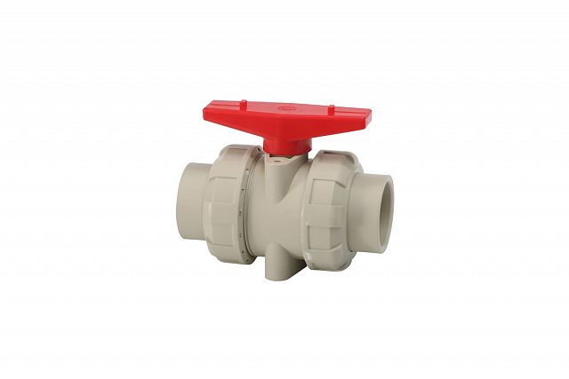 Кран шаровой 2-х ходовой, корпус PP-H, DN = 40 мм, PN = 10 бар, раструб d = 50 мм, уплотнение EPDM, стандартная рукоятка Кран шаровой, 2-х ходовой, DN: 40 мм, PN: 10 бар, присоед.: раструб под сварку d50, корпус: PP-H, шар: PP-H, седло: PTFE, уплотнение: EPDM, Рукоятка стандартная