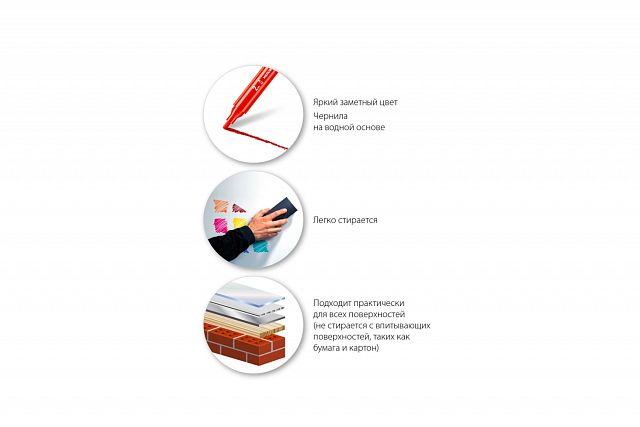 В маркере используется жидкая краска на водной основе и подходит для гладких и слегка шероховатых поверхностей, меловых досок и вывесок.