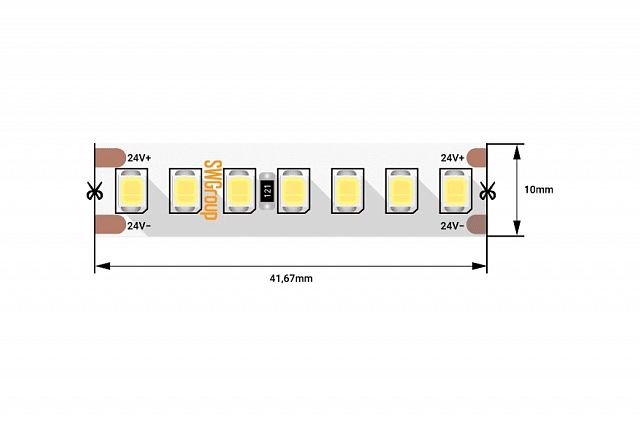 Лента светодиодная SWG со скотчем 3М 2835, 168 LED/м, 17,3 Вт/м, 24 В, IP20, 5м, Цвет: Теплый белый Размер светодиодов: 2835