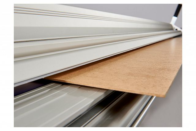 Самонастраивающаяся роликовая система перемещения ножа обладает нулевым боковым люфтом. Благодаря жёсткому соединению с надёжным зажимом достигается точное управление лезвием и высокая аккуратность работы, что снижает вероятность ошибок и потерь.