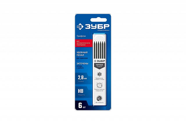 Набор грифелей для автоматического строительного карандаша Зубр Профессионал, 6 шт, черный