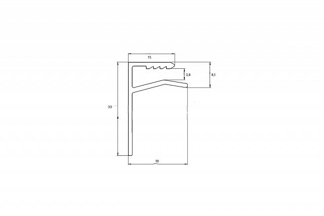 Алюминиевый профиль F-образный СМ 403,4/6,0, 4 мм*6 м, неанодированный Профиль F-типа разработан для установки алюминиевых композитных панелей толщиной 4 мм (например, акриловых или ПВХ). Благодаря зубцам в пазу обеспечивается надёжное крепление панели.