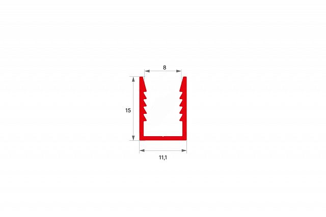 Алюминиевый профиль П-образный ALU-FAST, длина 3 м под 8 мм, с зубчиками, торцевой, неанодированный