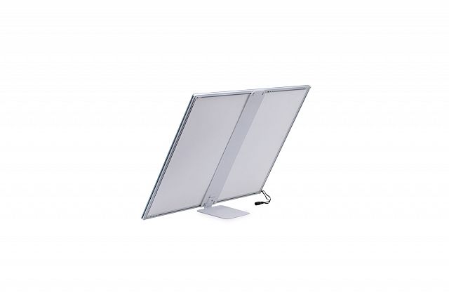 Световая панель GlassFrame Desktop, настольная, вертикальная, А4, 225*304 мм, одностороняя, серебро Световая панель GlassFrame формата А4 с металлическим крепежом — оптимальное решение для привлечения внимания к вашим материалам в офисных помещениях, торговых точках и выставочных пространствах. Современный дизайн и функциональность подчеркнут вашу рекламу и сделают информацию более заметной.
