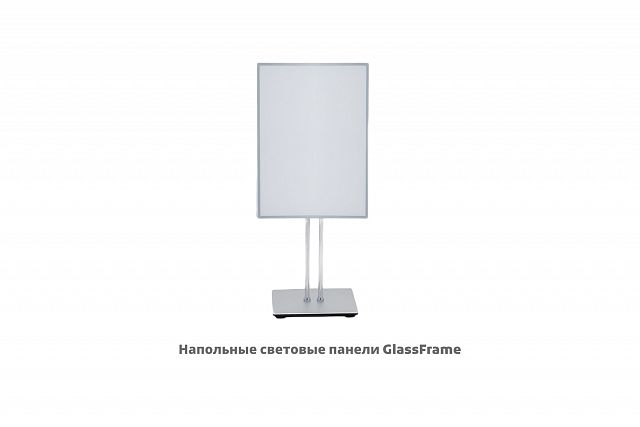 Световая панель GlassFrame, напольная со стойкой, А1, 594*841 мм, рег.высоты, серебро Напольная световая панель GlassFrame формата А1 — это отличное бизнес-решение, позволяющее наглядно демонстрировать продукцию и сервисы вашего бренда. Данная напольная модель способна стать запоминающимся элементом интерьера любого помещения, притягивая взгляды посетителей и формируя визуально приятную атмосферу.