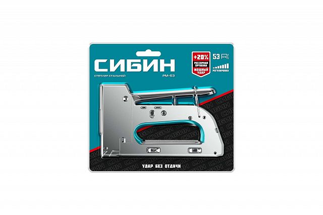 Стальной рессорный степлер Сибин УРМ-53, тип 53 (A/10/JT21), кал.23GA, 6-14 мм Степлер с рессорным ударным механизмом, повышенной мощностью и безударным ударом.
