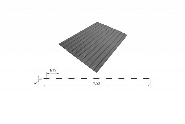 Профилированный поликарбонат С-8 (У) Plastilux Премиум, 1*1050*2000 мм, графитово-серый