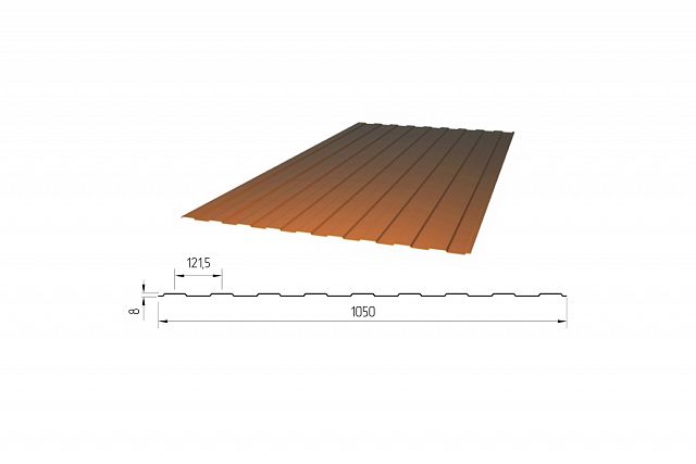 Профилированный поликарбонат С-8 (У) Plastilux Премиум, 1*1050*2000 мм, бронза