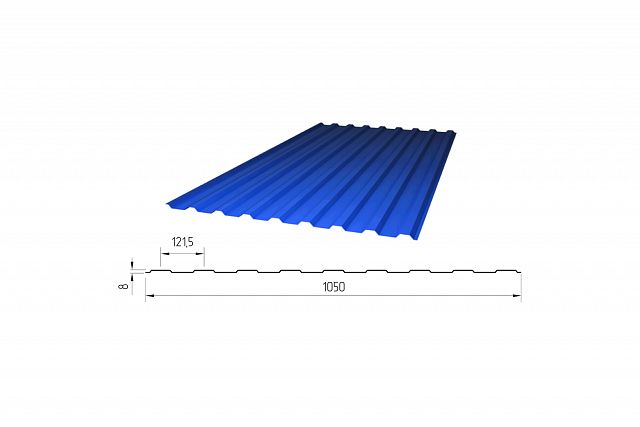 Профилированный поликарбонат С-8 (У) Plastilux Стандарт, 0,8*1050*2000 мм, синий