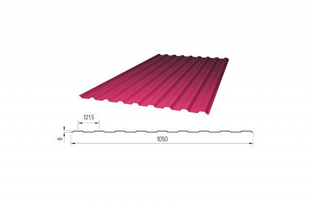 Профилированный поликарбонат С-8 (У) Plastilux Стандарт, 0,8*1050*2000 мм, гранат