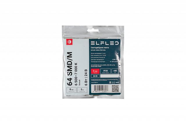 Лента светодиодная ELF со скотчем 3М PRO140, 2835, 64 LED/м, 6 Вт/м, 24 В, 780 лм, 5 м, белый Степень защиты: IP 20