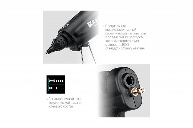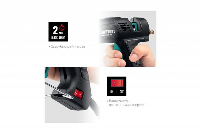 Клеевой пистолет электрический KRAFTOOL Industrial 300, 180 Вт, 193°С, D 11-12 мм, 45 г/мин Сверхмощный клеевой пистолет.