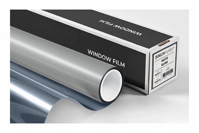 Декоративная пленка Uniondelta Deltafilm MATTE SILVER 2 MIL, 1,52*30 м, 65 мкм, VLT 17%, PET, матовый, серебряный Матовая архитектурная плёнка используется для декорирования интерьеров и ограничения видимости с обеих сторон без значительного уменьшения освещённости комнаты.